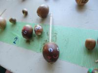 1年生のロッカーにどんぐり拾いに行って拾ってきたどんぐりに顔が書いてありました。このまま置物的に扱うかなと思っていたら、今日はどんぐりごまに変身していました。